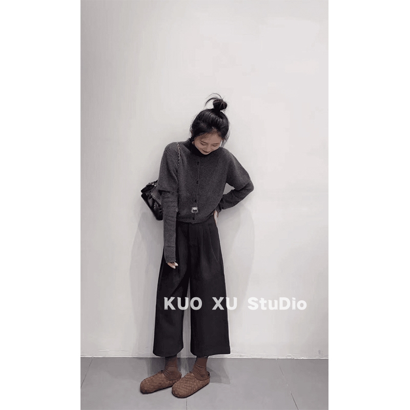 FlowGaga慵懒风毛衣开衫背心阔腿裤套装秋冬高级感气质三件套