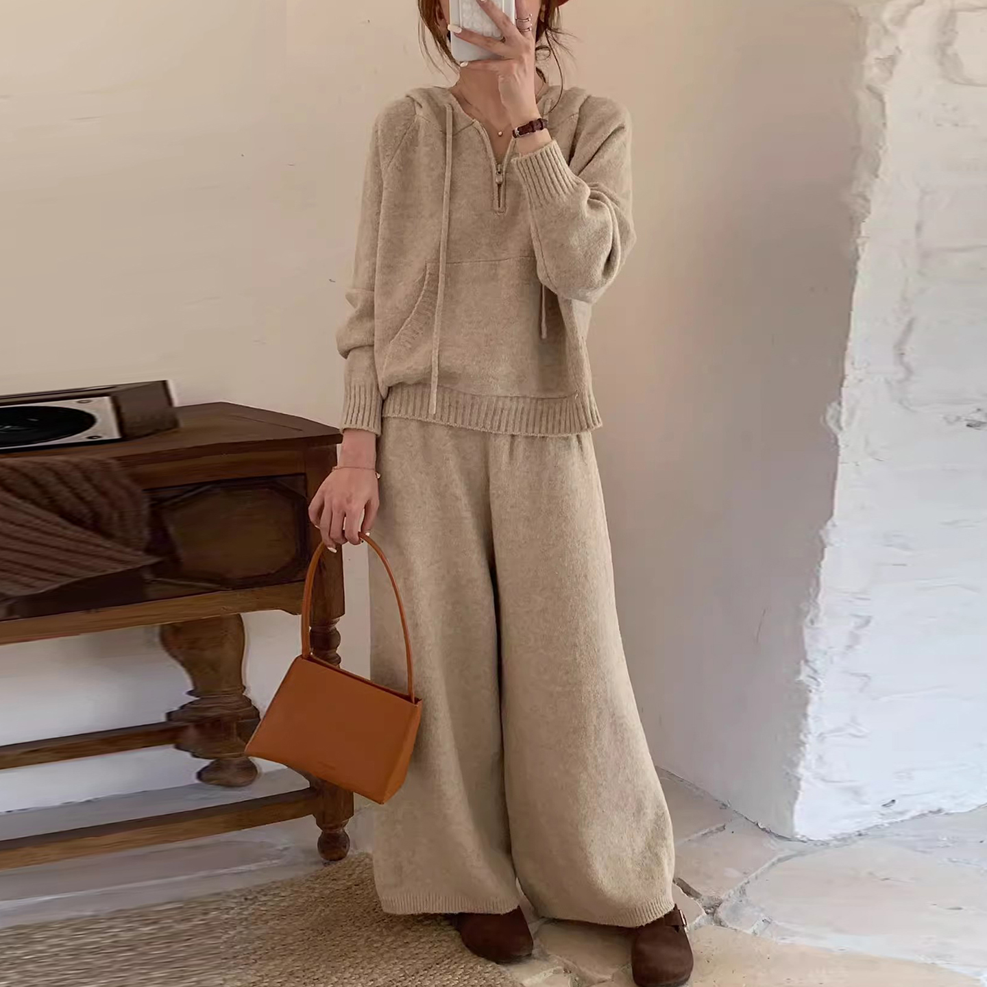 superniniyy 极简调性高品宽松连帽毛衣七分裤阔腿裤针织套装秋冬