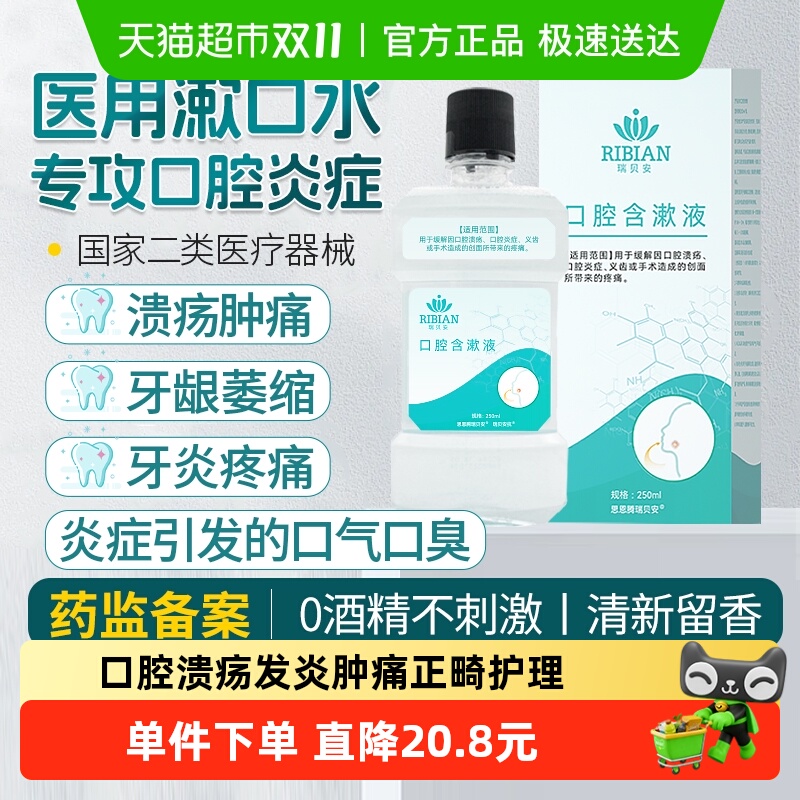 医用漱口水含漱液缓解口腔溃疡上火起泡牙周炎龈肿痛杀菌消炎口臭