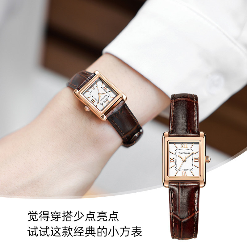 天王表复古小方表31315真皮小表盘石英小众轻奢手表女生日礼物