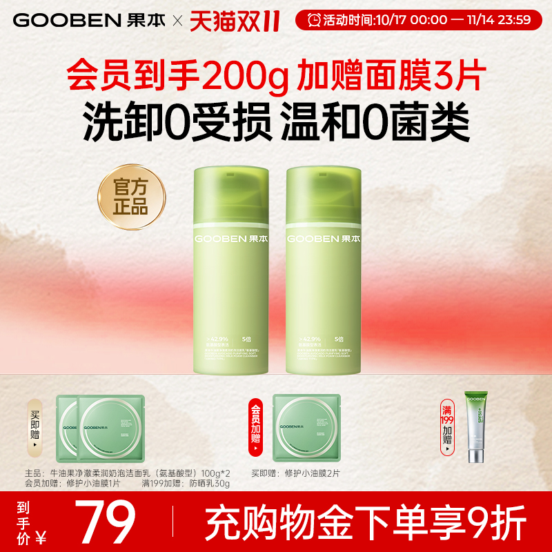 【双11抢购】果本鳄梨3.0洗面奶氨基酸洁面深层清洁毛孔控油