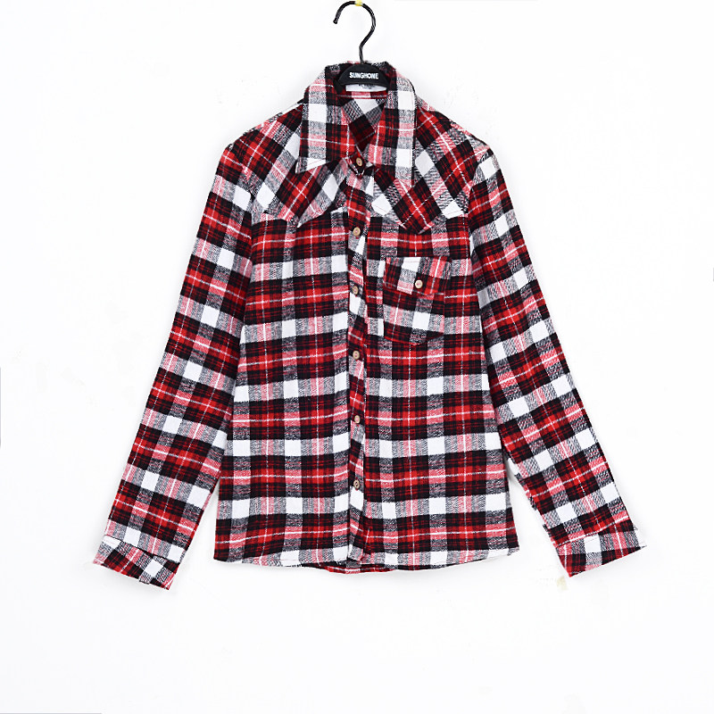 - 纯棉磨毛格子衬衫女