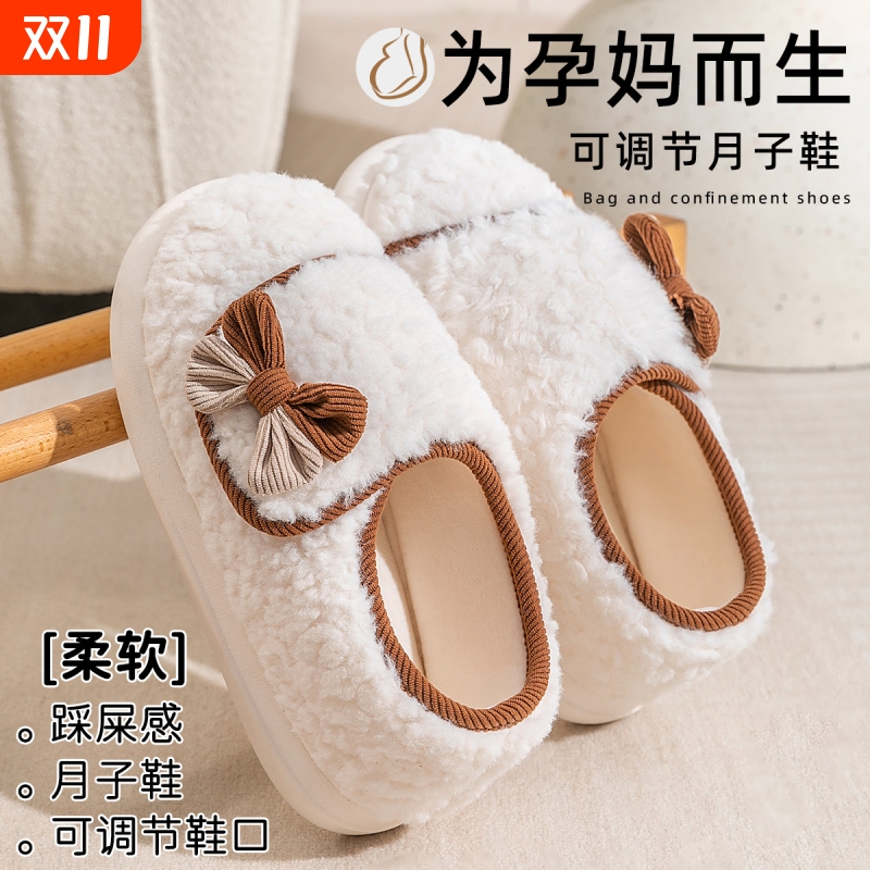 月子鞋秋冬季包跟产后孕妇11月份12保暖加绒软底防滑厚底产妇拖鞋