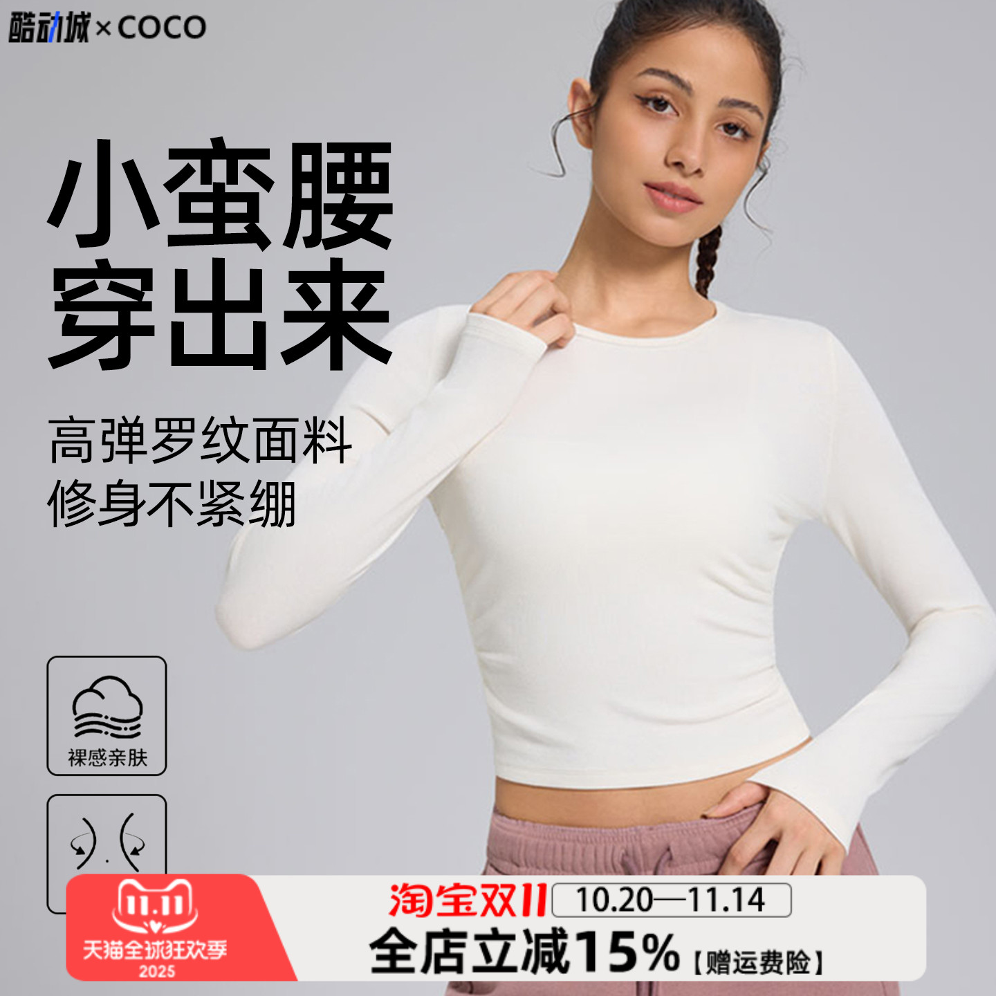 长袖圆领T恤女修身显瘦瑜伽服运动上衣罗纹裸感健身训练服打底衫