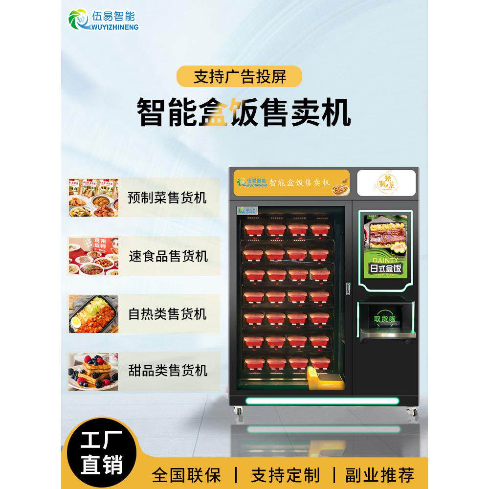 伍易早餐面包自动售货机预制菜盒饭披萨无人面馆机器24自助贩卖机
