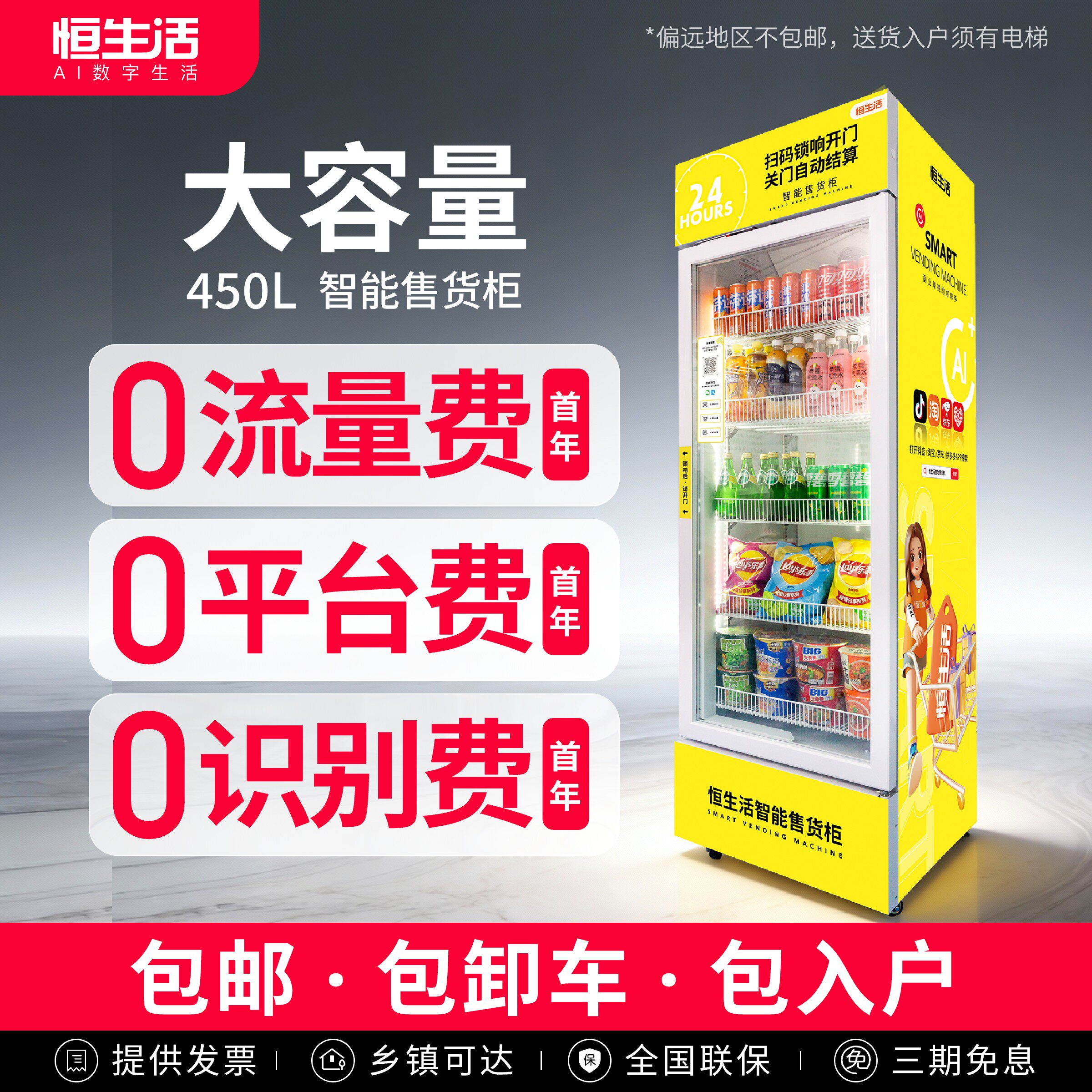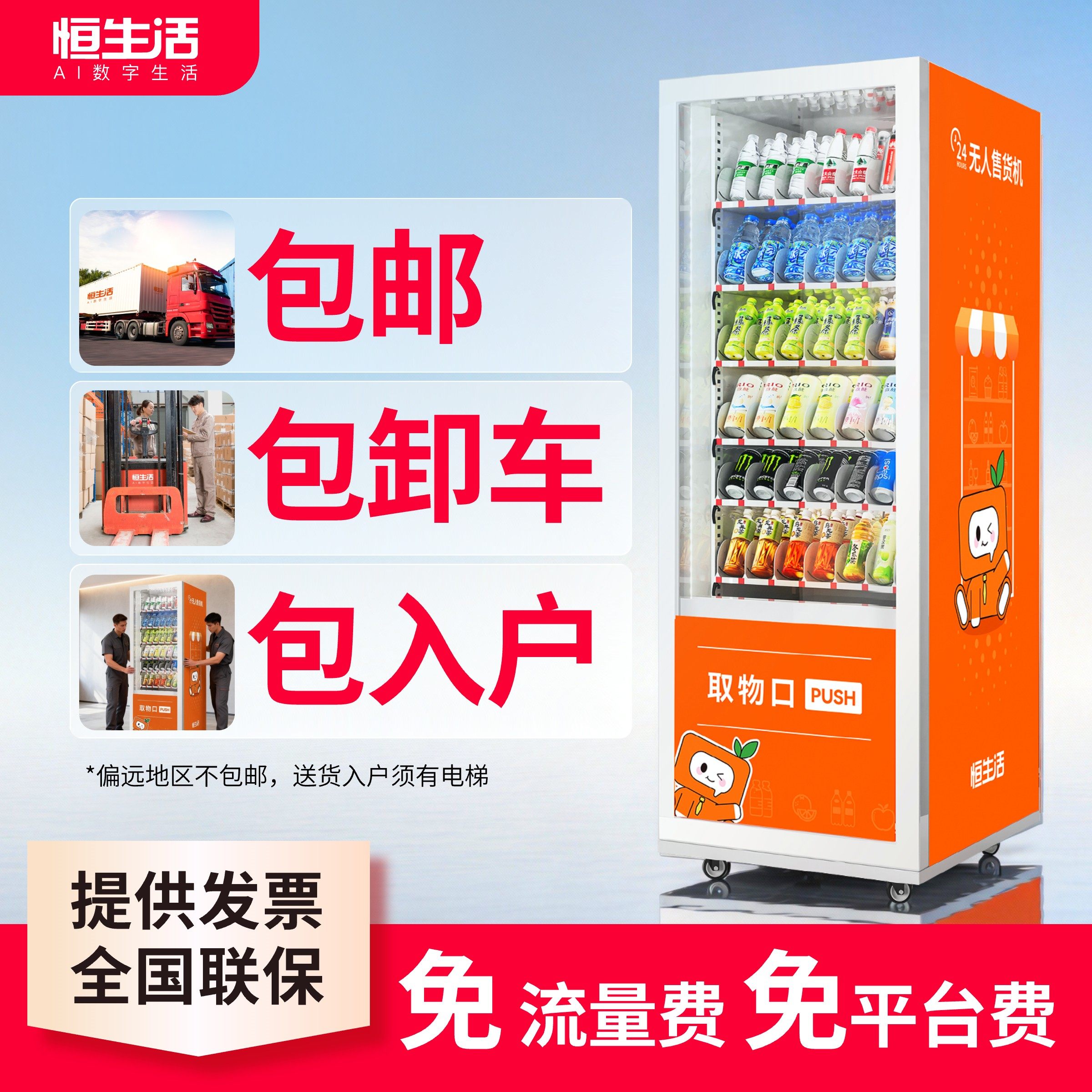 恒生活自动售货机24小时无人自助售卖机制冷零食饮料自动贩卖机