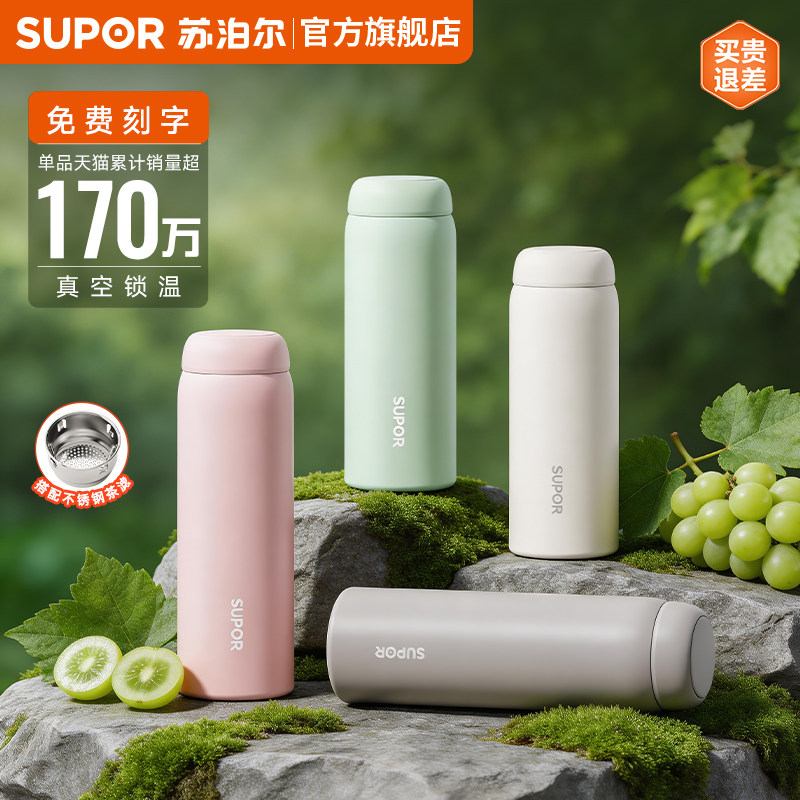 苏泊尔保温杯女士高颜值316L不锈钢学生礼物定制泡茶水杯子新款男