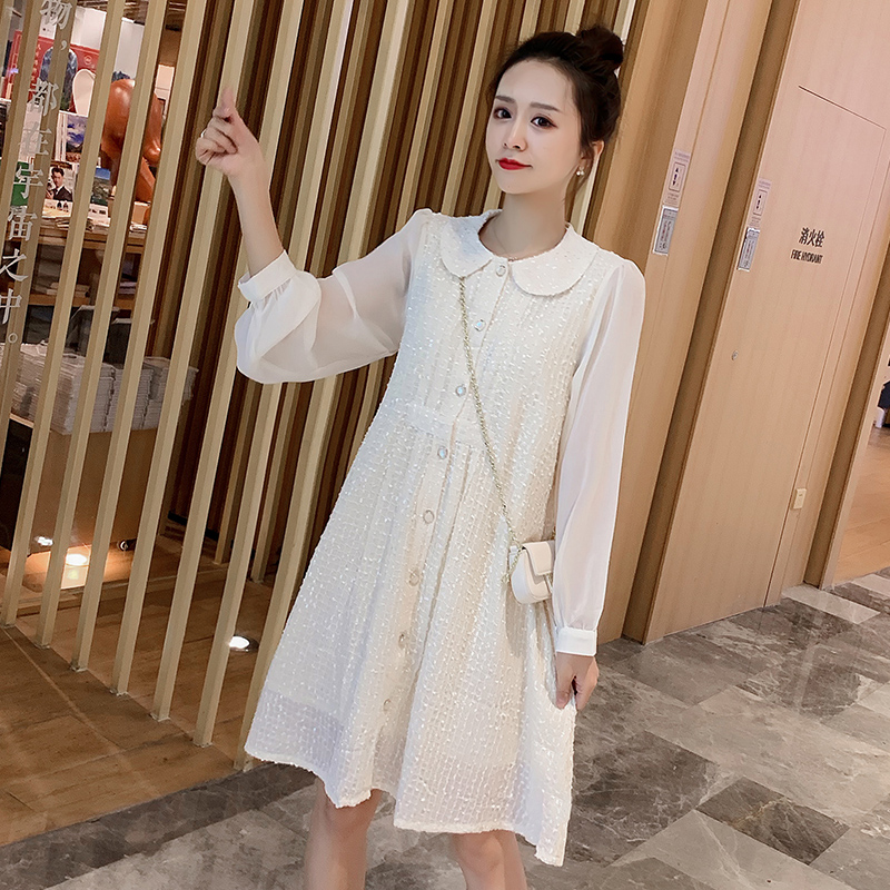 孕妇装春装时尚娃娃领长袖雪纺连衣裙宽松衬衫裙子春季网红孕妇裙