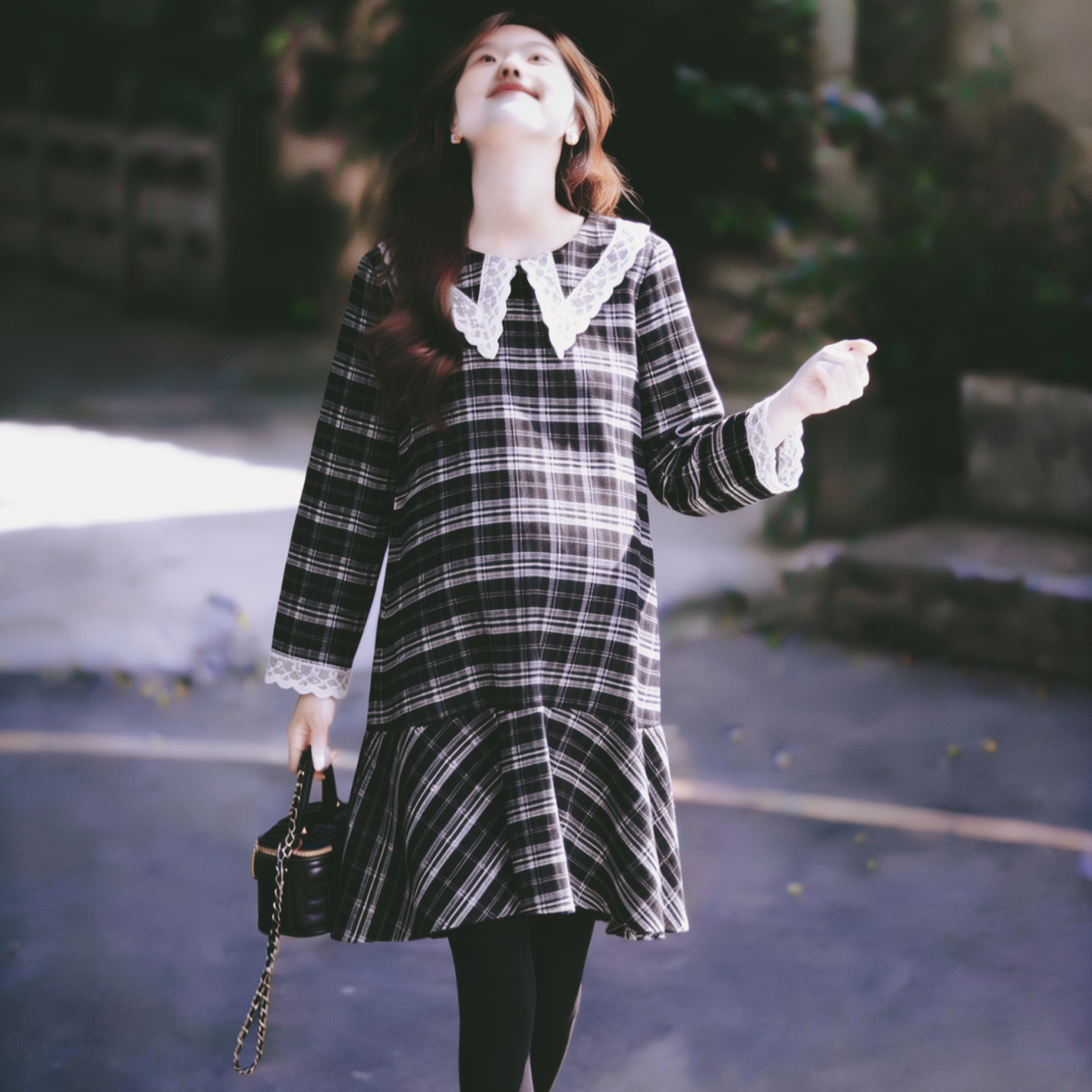 孕妇冬装内搭连衣裙加厚娃娃款宽松孕妇冬季打底格子连衣裙中长款