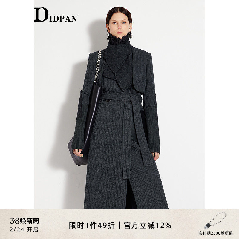 IDPAN女装长款大衣冬季新款时尚通勤气质百搭高级感毛呢外套