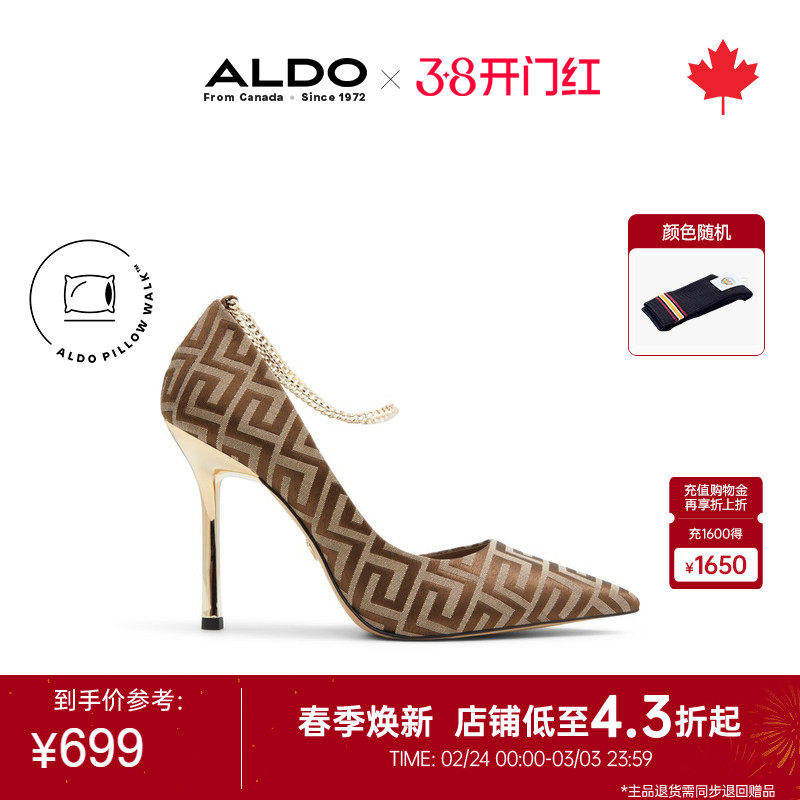 ALDO女士高跟鞋脚踝链条绑带尖头细跟侧空单鞋时尚大气ASFF24B27