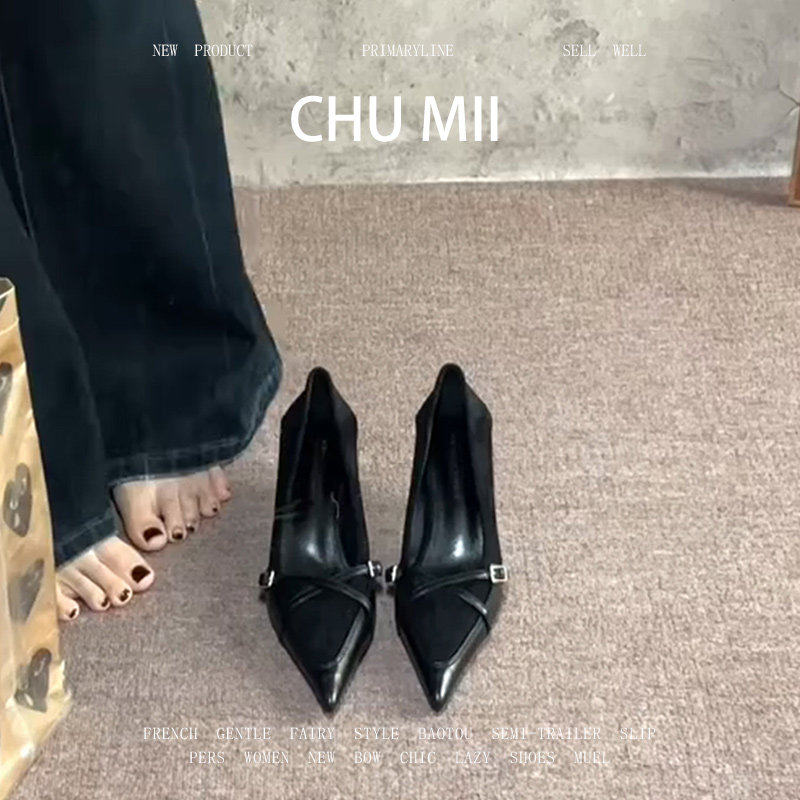 Colorful Bridge【月铎】金属扣绑带高跟鞋 尖头细跟黑色女士单鞋