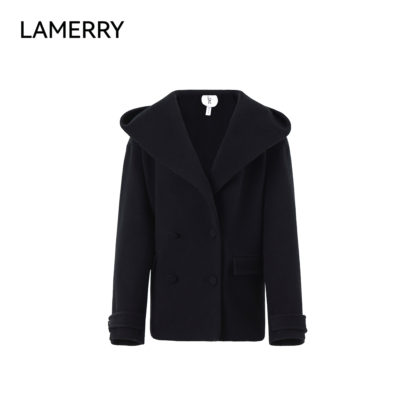 LAMERRY/朗美睿黑色茧型廓形宽肩大衣复古V领设计优雅25秋冬新款
