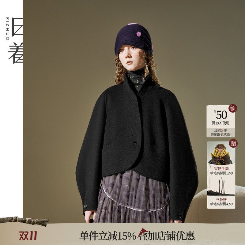 日着原创手工双面呢短大衣2025冬季新款小个子黑色茧型羊毛外套女