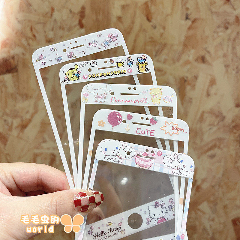 可爱美乐蒂适用iphone7plus手机膜苹果6/7/8卡通彩膜6s全覆盖se2钢化玻璃膜卡通kt猫8p软边