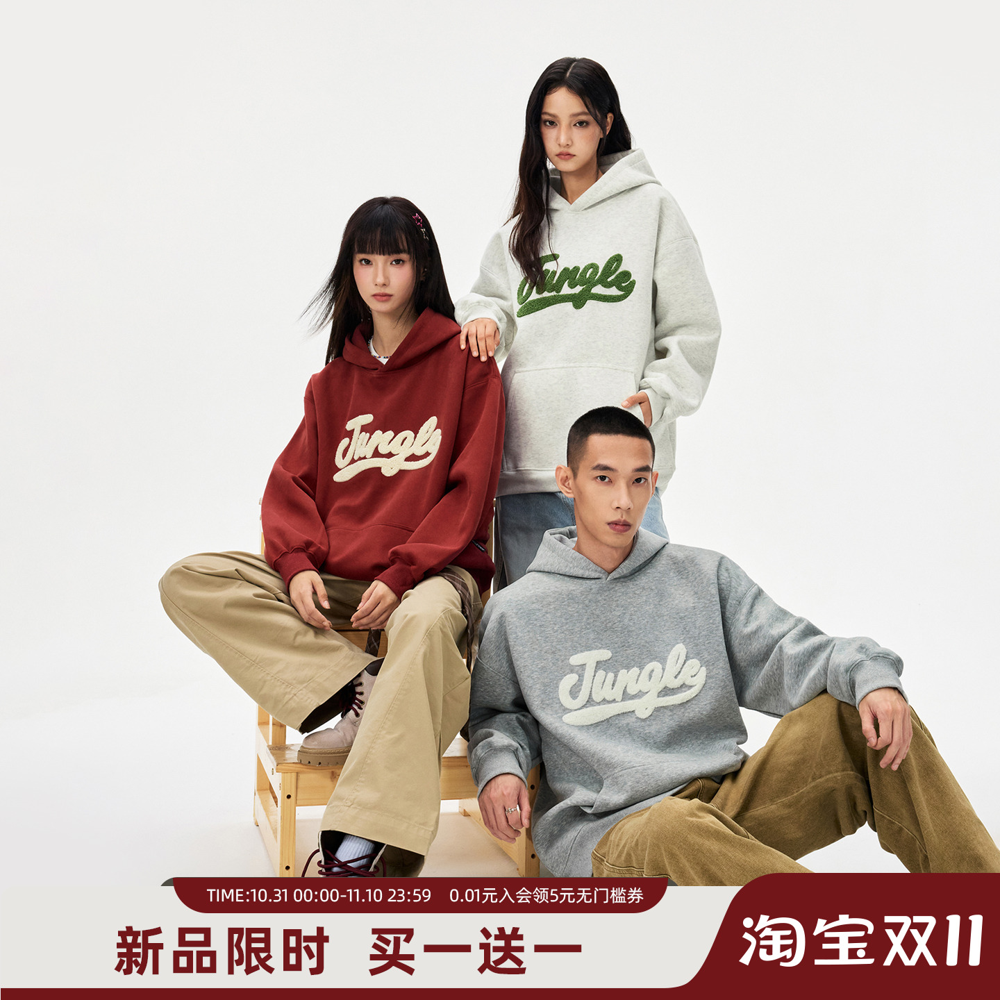丛林老虎原创设计拱桥绣字母连帽卫衣男秋冬季宽松休闲套头上衣女