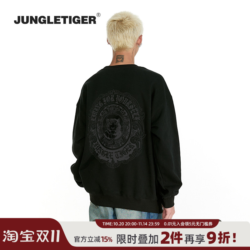 丛林老虎美式潮牌虎头圆领上衣男女秋冬新款420g重磅加厚套头卫衣