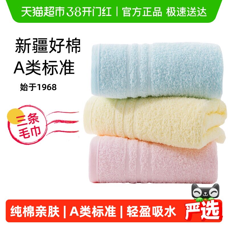 3条金号毛巾纯棉洗脸面巾家用全棉成人男女儿童吸水洗澡擦头发A类