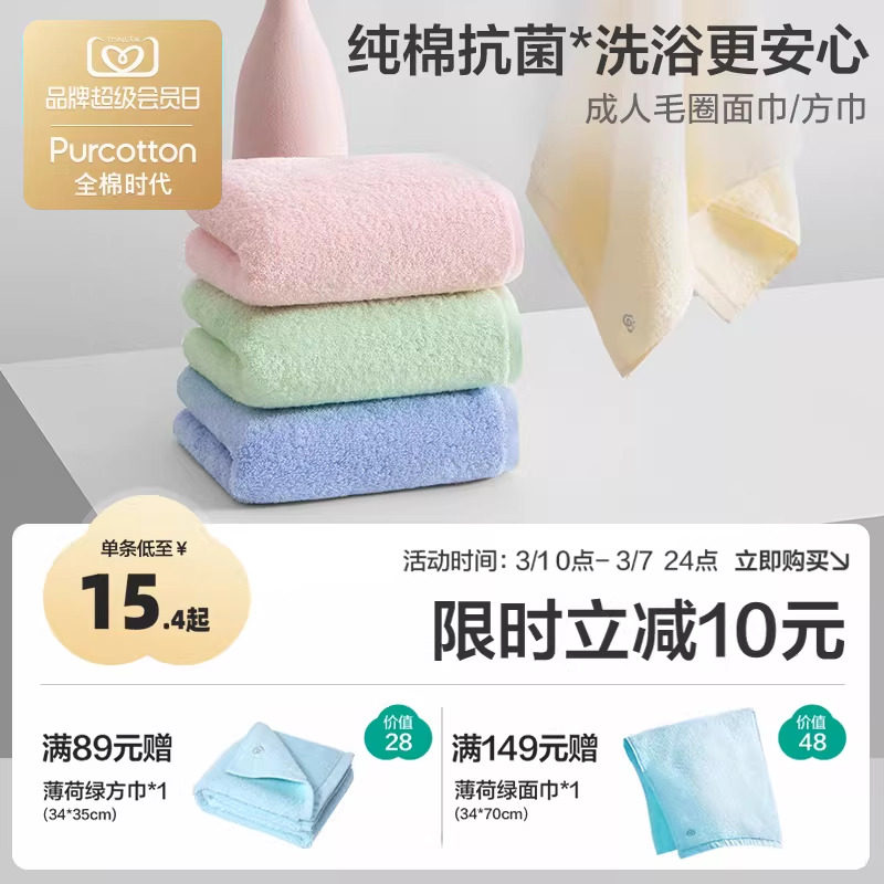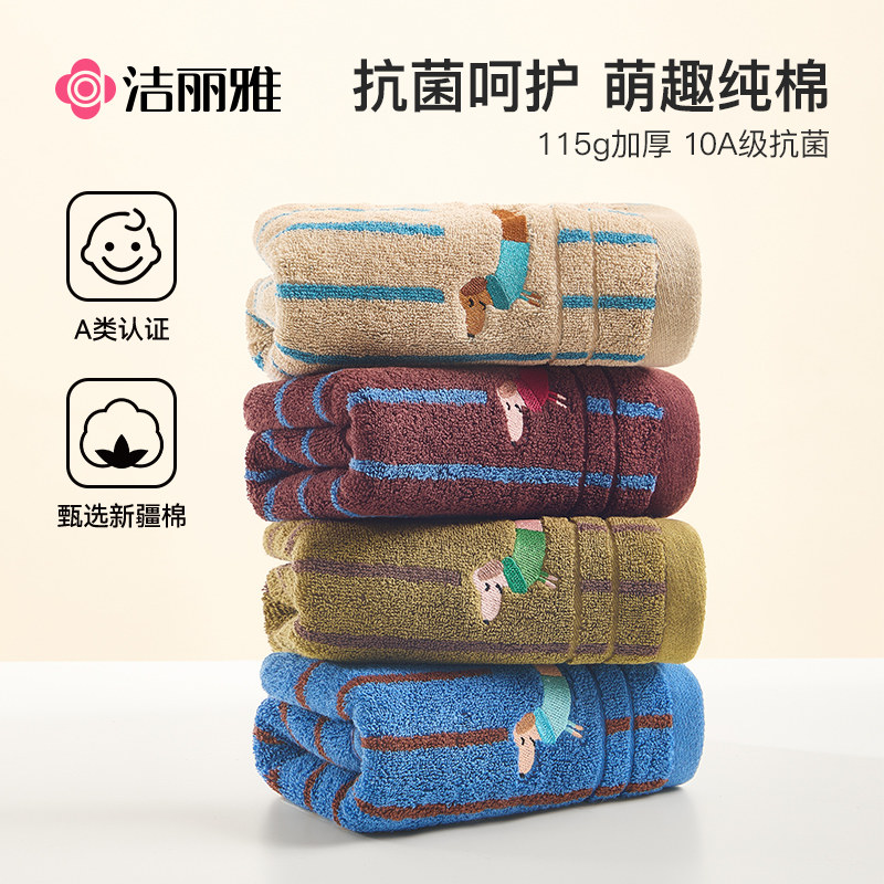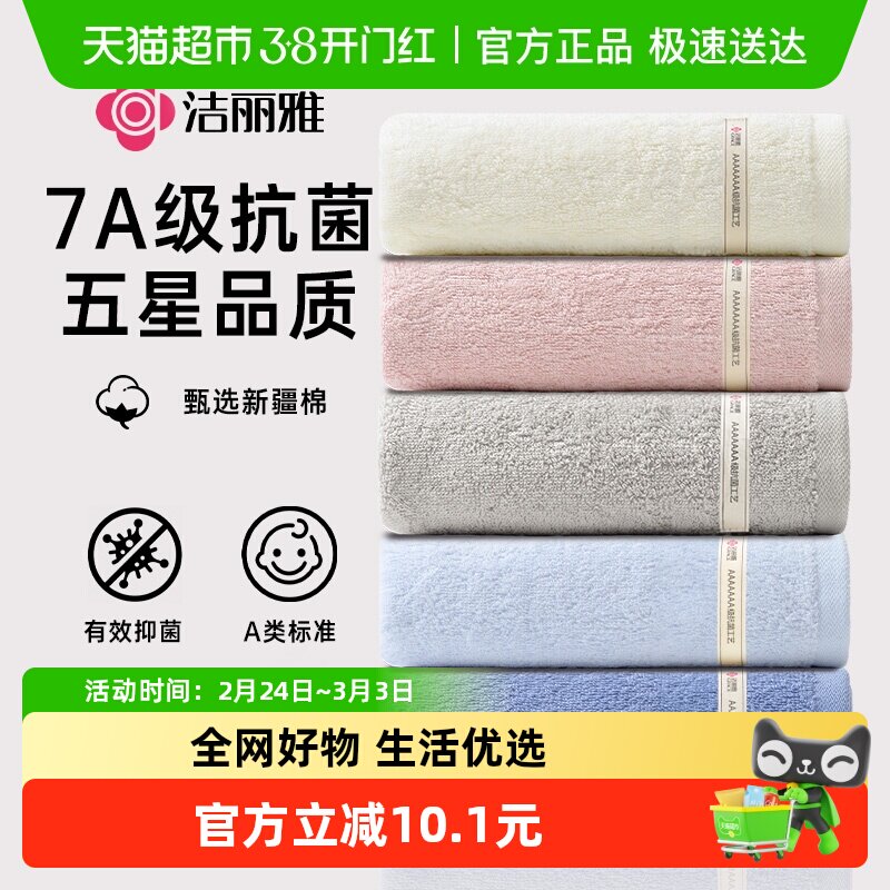 洁丽雅官方旗舰店纯棉抗菌洗澡毛巾男女吸水家用全棉面巾成人洗脸
