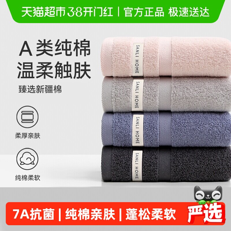 三利毛巾纯棉洗脸洗澡吸水成人家用全棉面巾男女柔软不易掉毛情侣