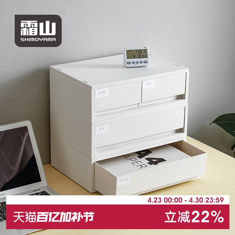 霜山抽屉式收纳盒桌面A4文件双格储物盒办公室桌下门口玄关整理盒