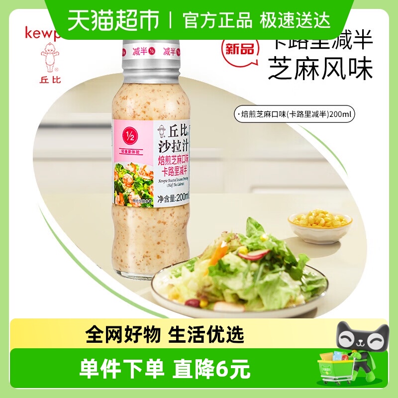 丘比沙拉酱烘焙芝麻酱焙煎芝麻沙拉汁卡路里减半200ml轻食蔬菜酱