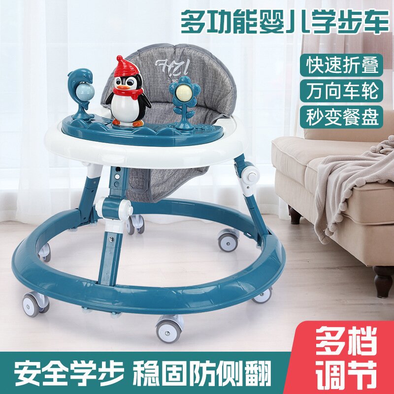 婴儿学步车防侧翻6/7-18个月宝宝助步车多功能防侧翻可折叠