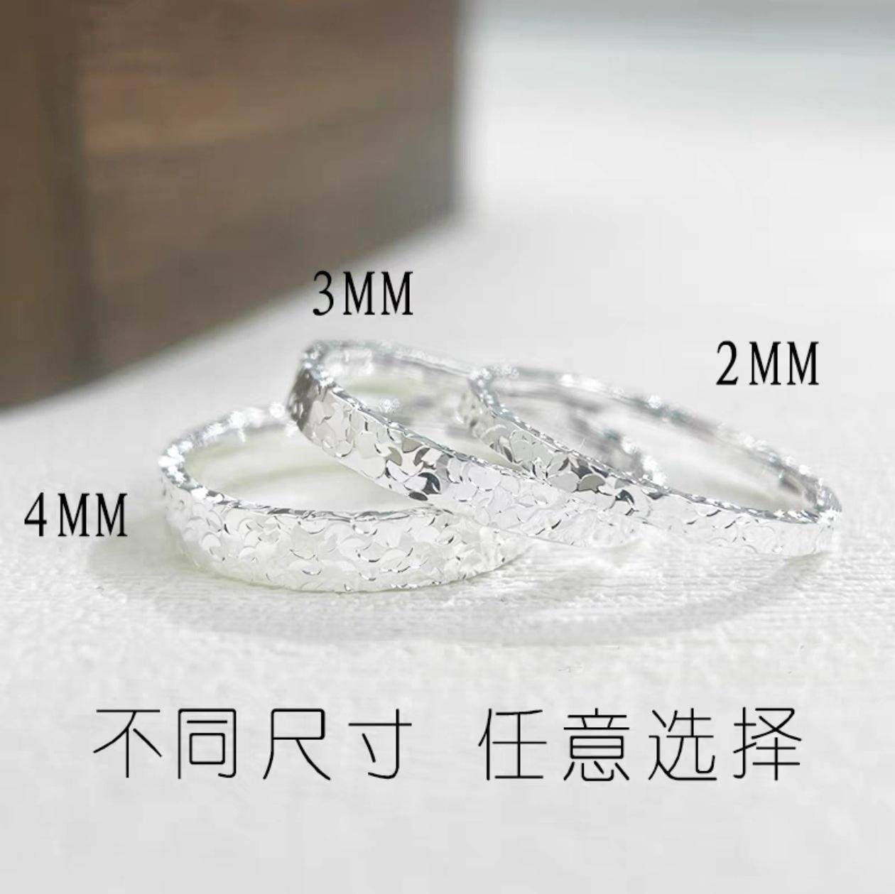 S999足银三面碎碎冰闭口戒指女纯银轻奢碎冰冰情侣指环尾戒刻字