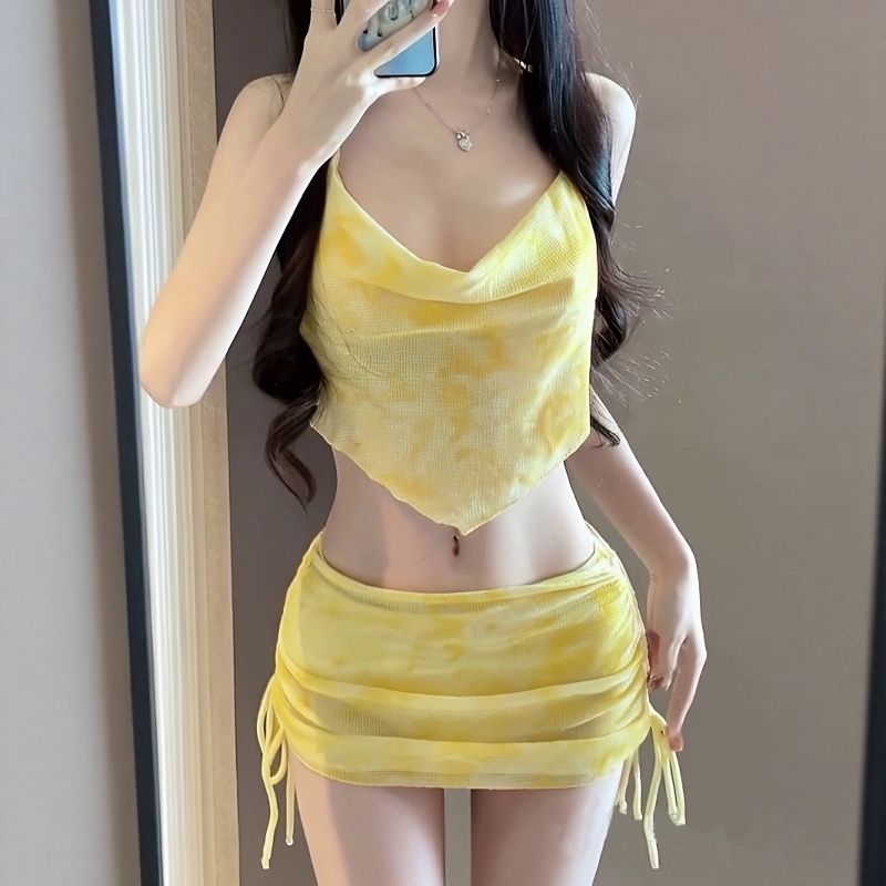 温泉分体式泳装三件套2025新款性感纯欲风海边沙滩显瘦修身比基尼