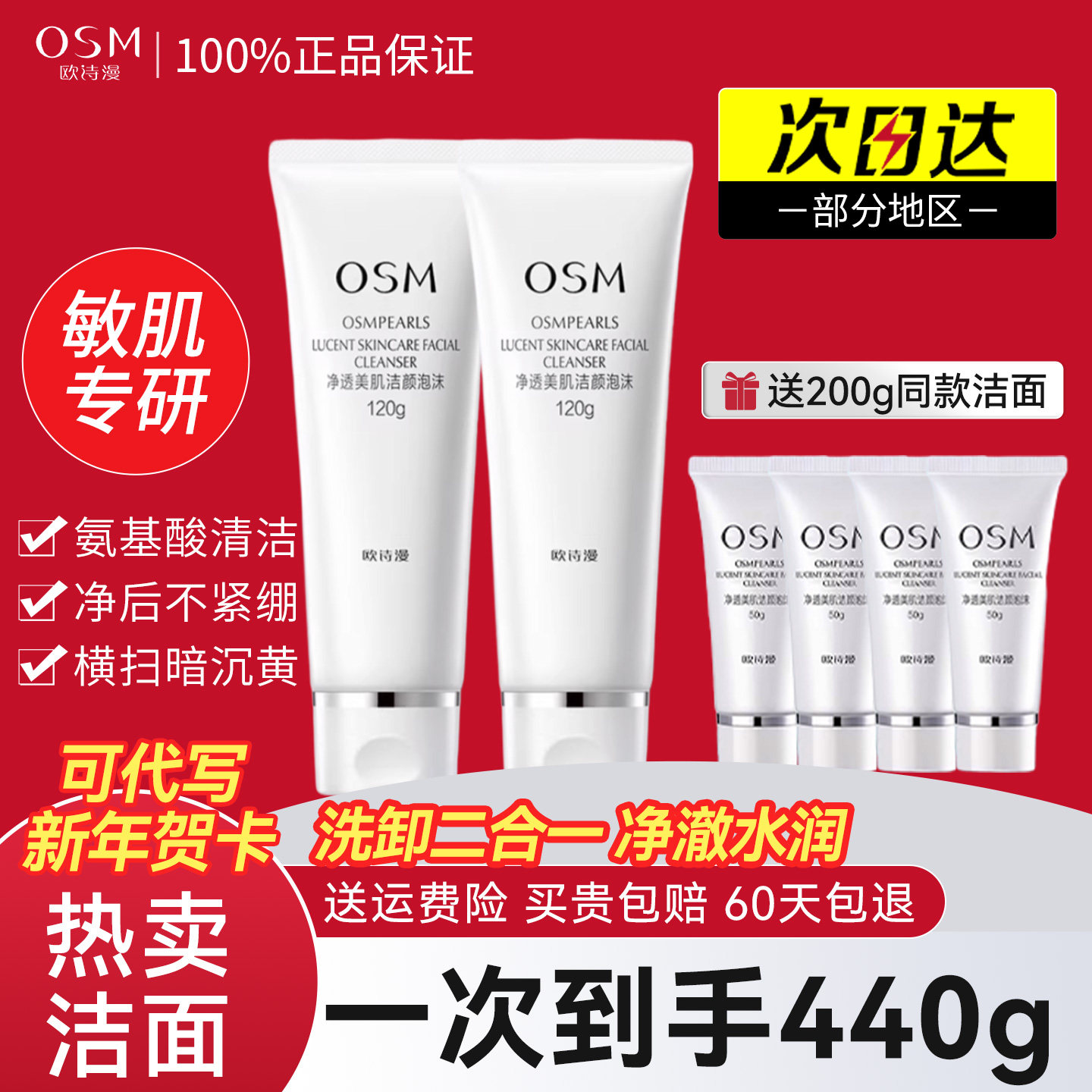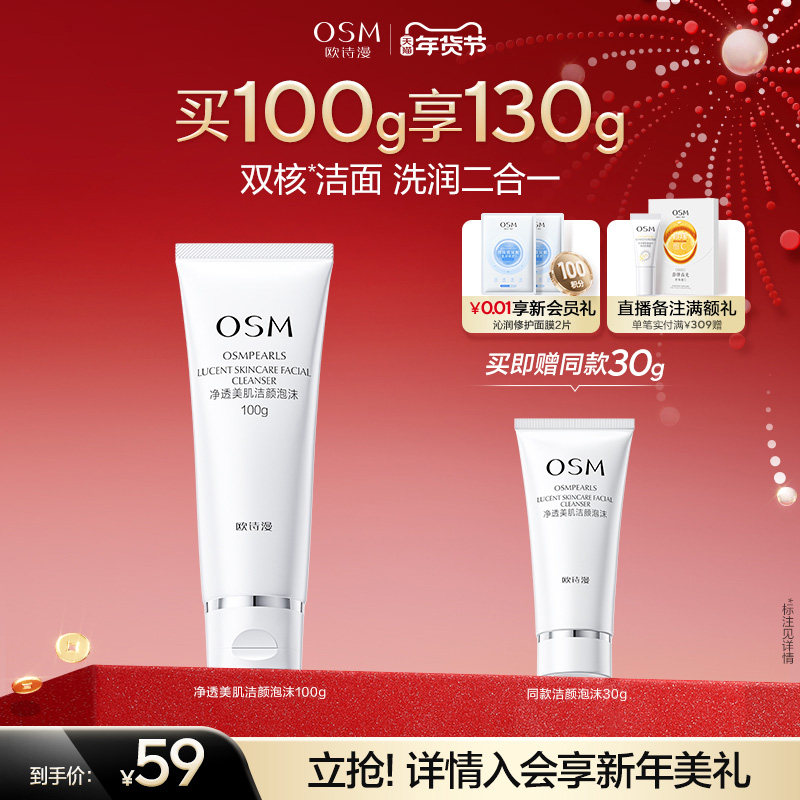 欧诗漫洗面奶正品官方女士男士洁面乳深层清洁氨基酸泡沫专用osm