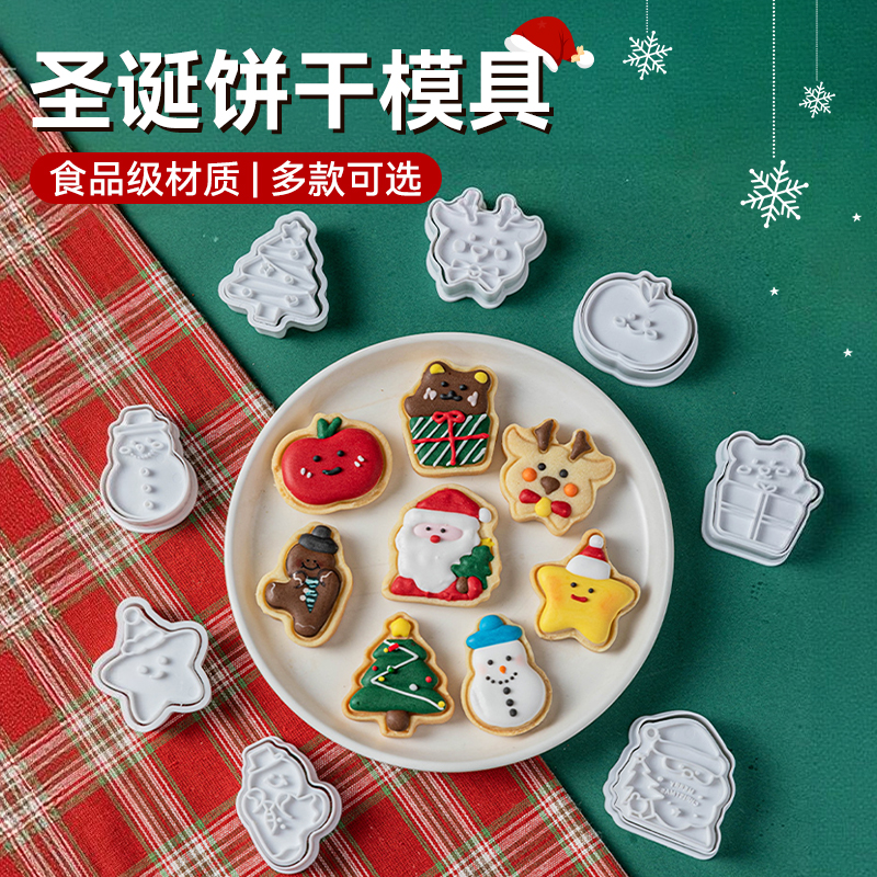 圣诞节摇摇乐饼干模具烘焙家用按压式卡通儿童diy曲奇糖霜不锈钢