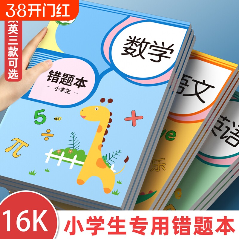 数学错题本英语小学生专用纠错本错题整理本三年级四年级本子笔记本子加厚学习笔记本学习用品好物高颜值开学