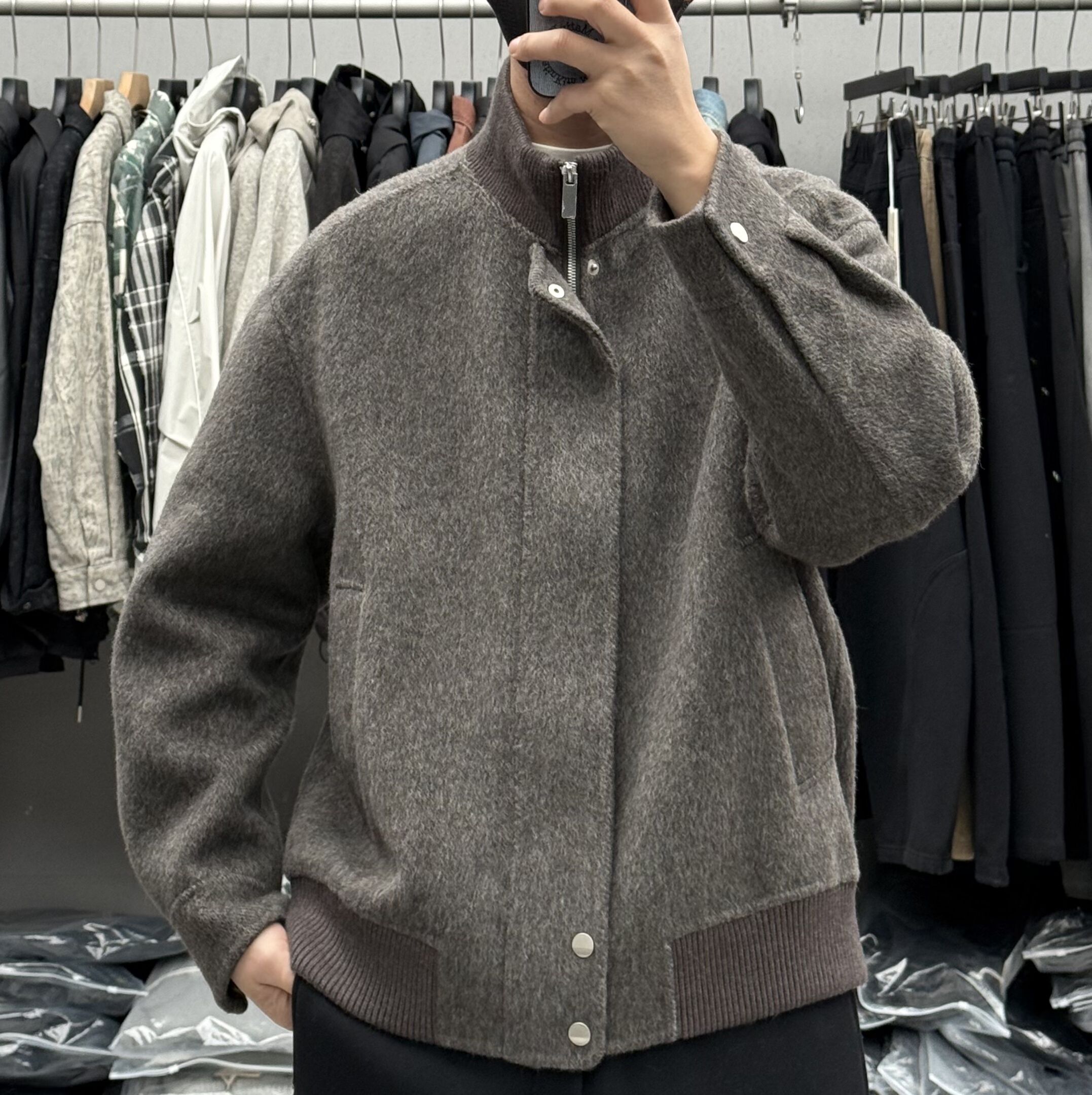 立领毛呢外套男士2025新款双面羊毛呢子大衣短款宽松拉链夹克上衣