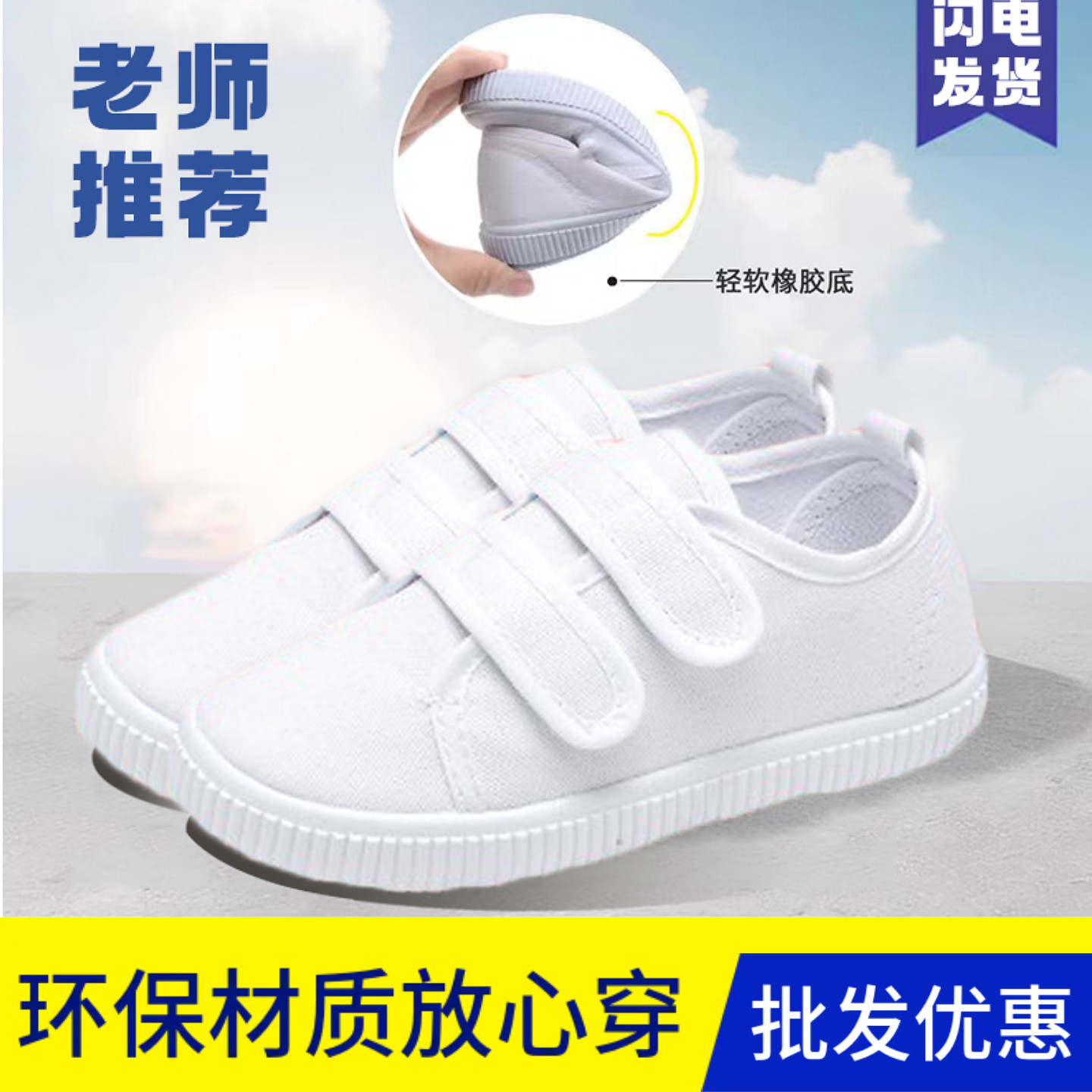 儿童小白鞋女童帆布鞋男童白球鞋幼儿园室内白色布鞋小学生运动鞋