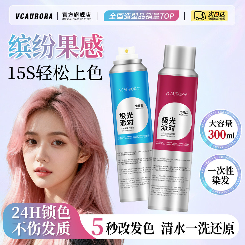 极光一次性染发喷雾染色剂神器膏黑色可洗临时植物上色彩色男披肩