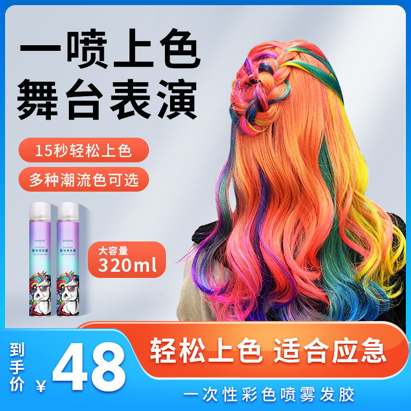头发彩喷一次性染发喷雾染膏染色剂可洗彩色发胶喷发剂临时不伤发