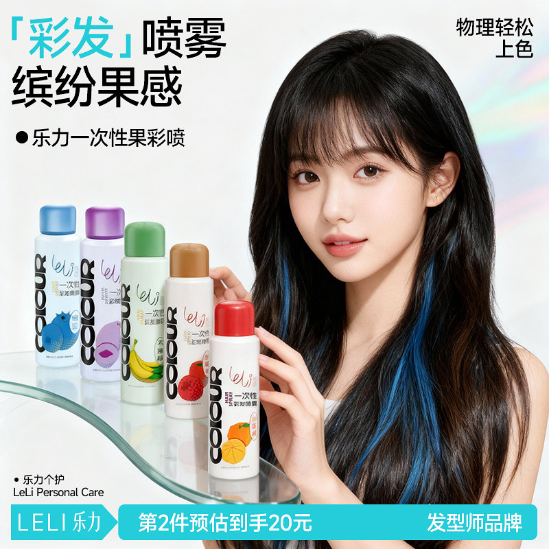 乐力果彩瓶一次性染发喷雾黑色染色剂膏可洗掉临时补色染发笔彩色