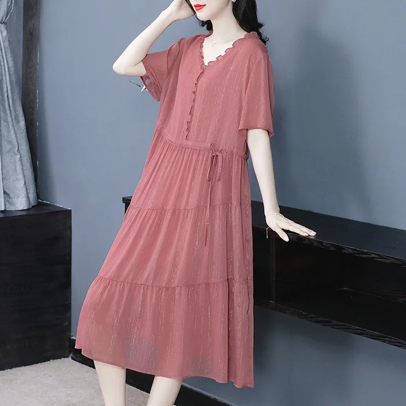 - 短袖连衣裙女夏 中长款 雪纺