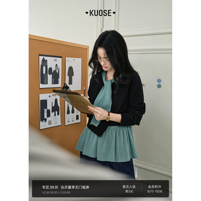 oneup淡人高知老钱风背心针织开衫两件套上衣女秋冬羊毛衣外套装