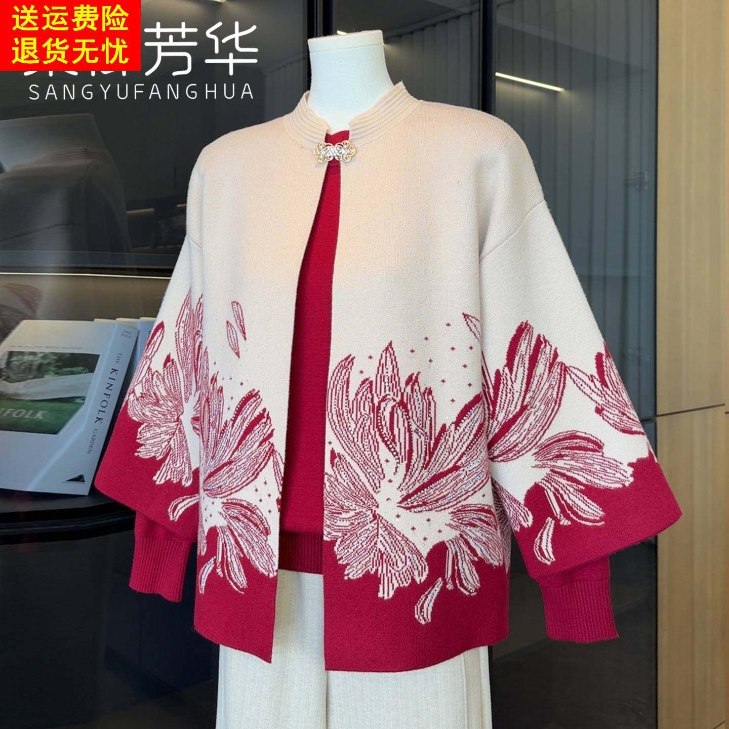 妈妈装新款春秋针织衫马甲内搭裤子三件套中老年女新中式气质套装