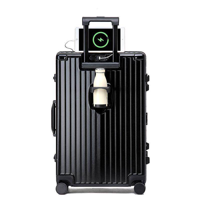侧开铝框行李箱多功能拉杆箱20寸旅行箱24大容量登机箱男女箱子