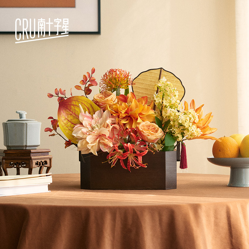 新中式禅意仿真花摆件高档餐桌茶几花艺摆设装饰酒店室内客厅假花