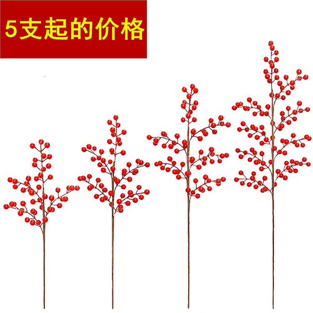 发财果仿真花摆件客厅装饰红色冬青假花新年红果摆设红浆果年宵花