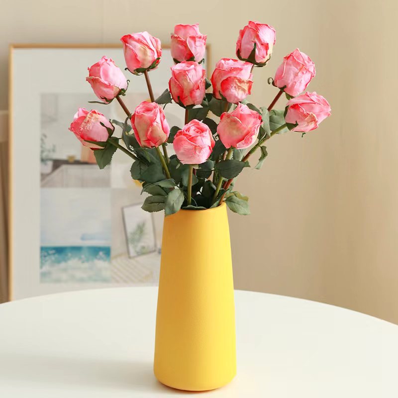 仿真玫瑰花情人节塑料花束家居摆件假花客厅餐桌插花干花摆设装饰