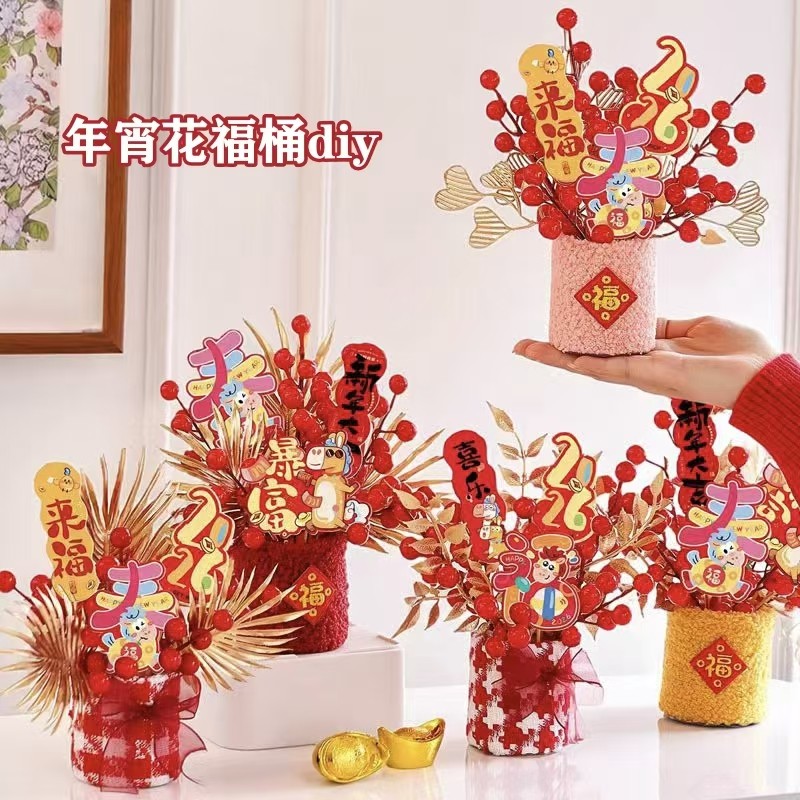 新年过年福桶仿真花摆件客厅餐桌发财果装饰品年宵花搬家结婚礼物