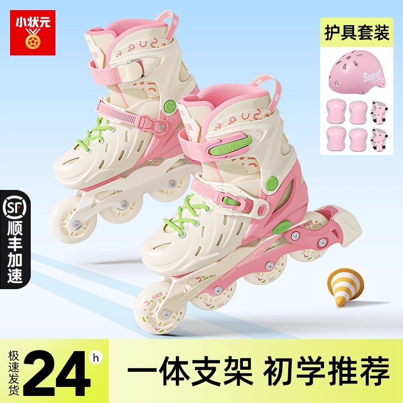 小状元儿童轮滑鞋女童溜冰鞋初学滑轮滑冰旱冰男孩3-6-12岁直排轮