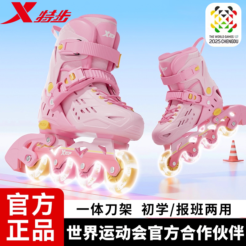 特步溜冰鞋女童轮滑鞋儿童女孩初学者专业男童6-12岁滑冰旱冰成人