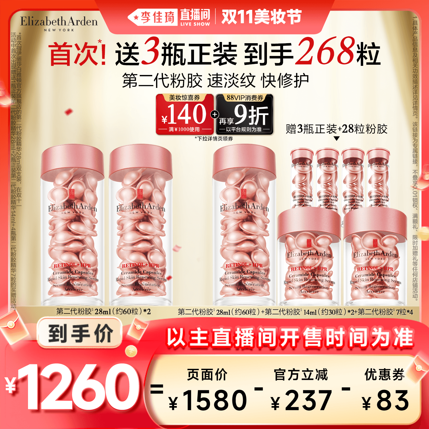 伊丽莎白雅顿粉胶夜间多效精华胶囊早c晚a次抛神经酰胺维稳金胶
