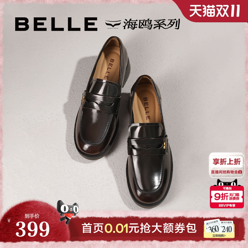 百丽复古英伦风乐福鞋女新款真皮小皮鞋子软底深口单鞋A5Z1DAA4