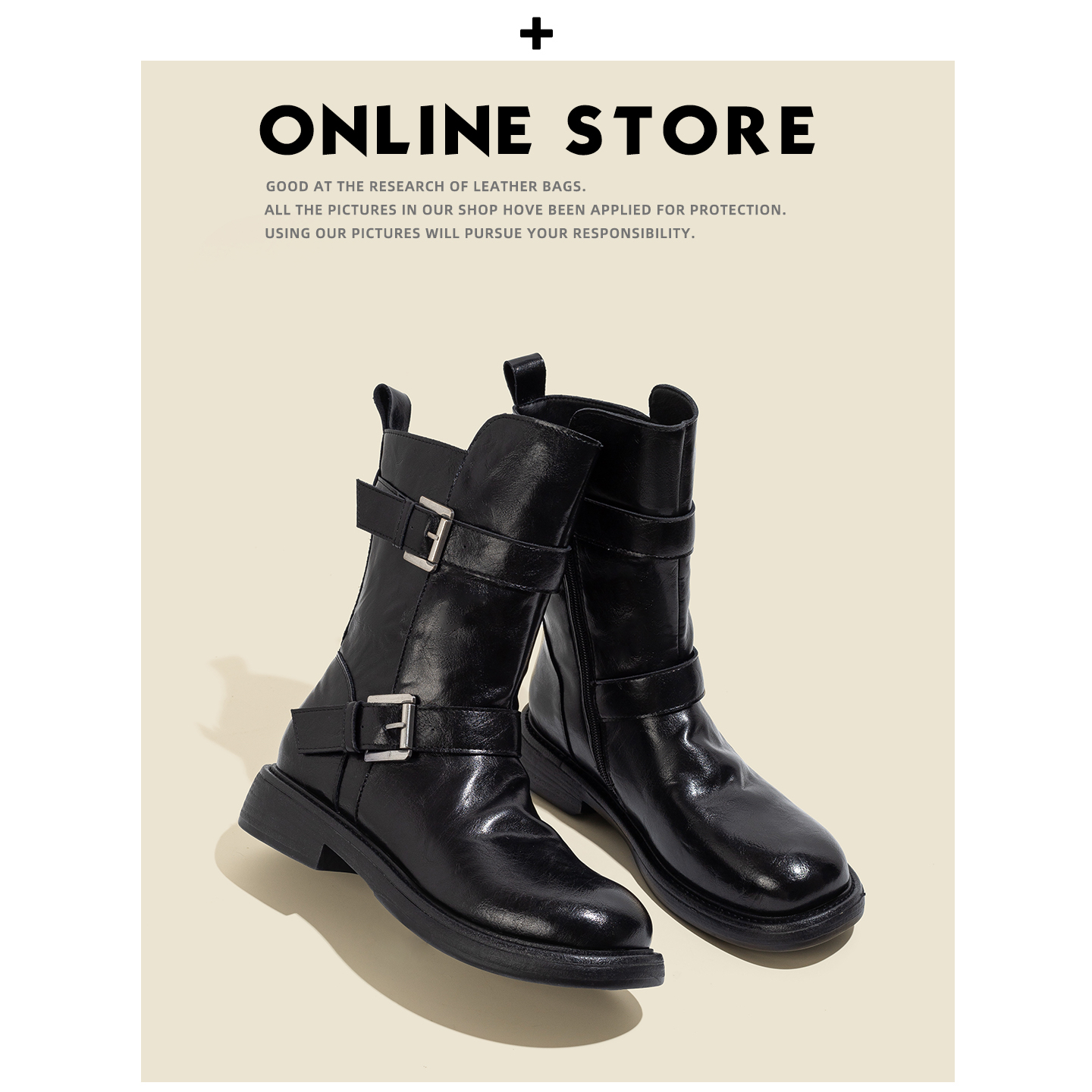 复古英伦风马丁靴女2025秋冬新款粗跟皮带扣短靴机车靴百搭单靴潮